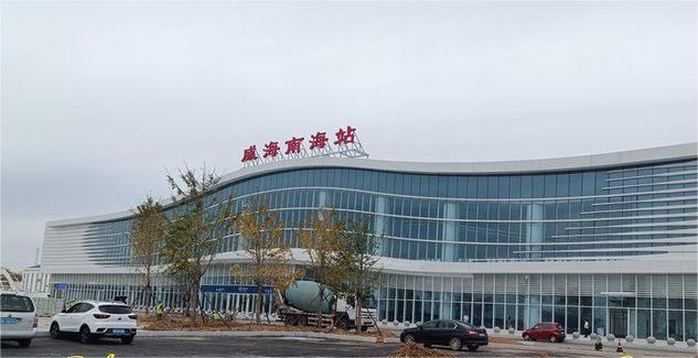 Karolo ea Lairong High-Speed e potlakileng e hokahanyang Yantai le Weihai. Marako a eona a phetiloe le a nang le mabota a maholo a khalase a theha seteishene se selelele, se khanyang se hlahang.