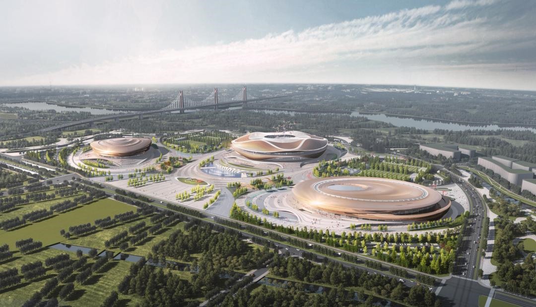 Sebaka sa Pontšo ea Qingdao Scone, setsi se seholo sa Scope Expo se sala maikutlo a sa feleng teng lebopong la Ruyi. E shebiloeng ho tloha, "bonngoe" ba eona ba chitja "bo shebahalang ba supa, litsebi tse tšoeu tse tšoeu tse kang tse tšoeu li hlophisitsoe hampe haholo. Ba theha lesela la morethetho, le sa laoleheng le tsoma leholimong.