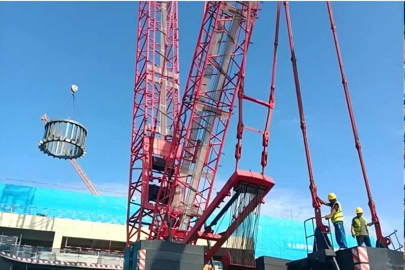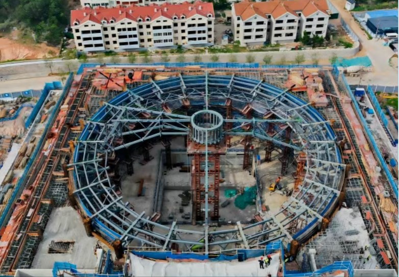 Haufinyane, mohlahlami oa Dongoung Sphrini oa khale oa khale, e leng moetlo oa bohlokoa oa nako le morero oa bohahlauli oa Yantai. E ile ea fumana mohato oa bohlokoa oa kaho - e leng ho hooa ha sebui se potolohileng setsi sa liketsahalo tsa Theatre. Sebakeng sa marang-rang, joalo ka Crawler ea Crawler ea 650-ton e ile ea phahama butle, mabale a phatsime a 24 sebakeng sa thuto ea liketsahalo a ne a phehoa ka nepo. Sebaka sena sa liketsahalo, se tla etsa khopolo-taba ea Bochabela, e Ikhethileng Bokato "Steel Backbone". Ts'ebetso ena ea bohlokoa ea ts'ebetso ea ho hahamalla nako e etsahalang kahong ea boenjiniere ba tšepe 'me ba bopa maemo a matle bakeng sa tsoelo-pele e nepahetseng ea morero oohle oa mosebetsi.