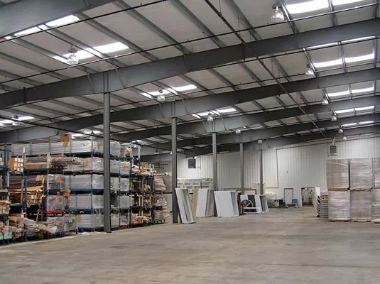 Litharo tsa kahare le litsamaiso:Bokaholimo ba ntlo ea polokelo bo qetile ho latela litlhokahalo tse boletsoeng, ho kenyelletsa le mabone, ho kenella moeeng le lits'ebetso tsa tšireletso. Lisebelisoa tse ikhethang, tse kang polokelo ea polokelo le mezzaniines, le tsona li ka kenngoa ho ntlafatsa ts'ebetso ea ts'ebetso.