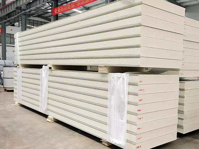 Insulation e Sebetsang: Lera la polyurethane foam insulation ka har'a liphanele tsa sandwich le fana ka tšireletso e ntle ea mocheso, ho netefatsa hore bokahare ba ntlo bo lula bo le monate selemo ho pota. Sena se fokotsa tlhoko ea litsamaiso tse pharaletseng tsa ho futhumatsa le ho pholisa, e leng se bakang ho baballa matla le khabone e tlase.