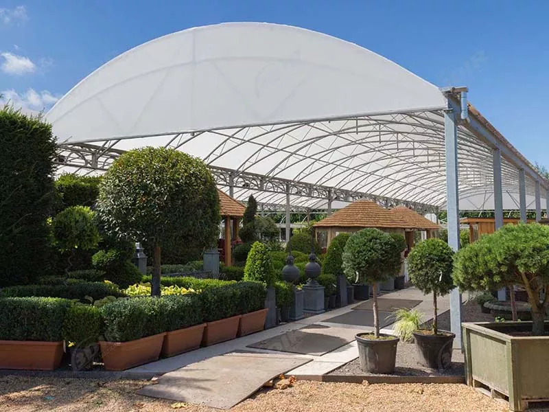 Moralo oa Tšepe: Holo e tšehelitsoe ka foreimi e tiileng ea tšepe, e nang le maballo, litšiea le litšepe. Tekanyo e phahameng ea matla ho boima ba tšepe e lumella hore ho thehoe li-span tse kholo ntle le tlhokahalo ea litšiea tse eketsehileng tsa tšehetso, ho eketsa sebaka se fumanehang bakeng sa lipontšo tsa limela.